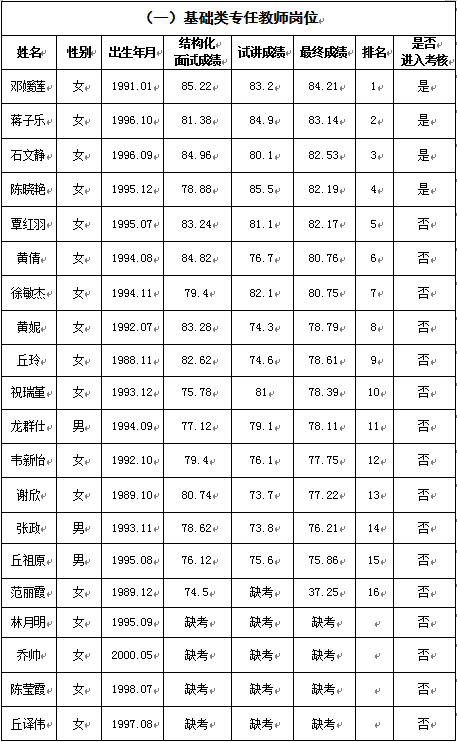 我院2023年公开招聘实名编制工作人员面试工作于2024年1月6日至1月7日进行,根据《广西壮族自治区事业单位公开招聘人员实施办法》(桂人社发〔2011〕155号)以及学院招聘工作流程,现将本次公开招聘工作人员各岗位面试成绩及进入考核的人员名单公告如下: