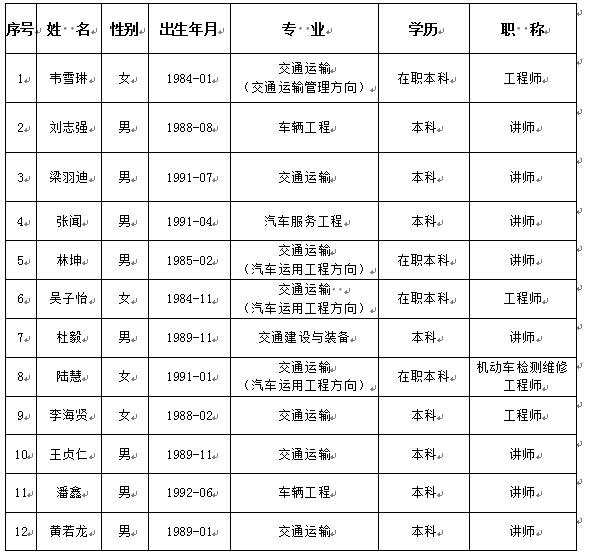 三、交通工程类专任教师岗位(12人)