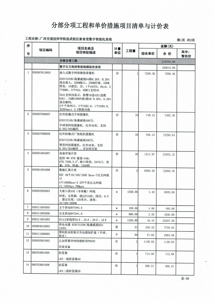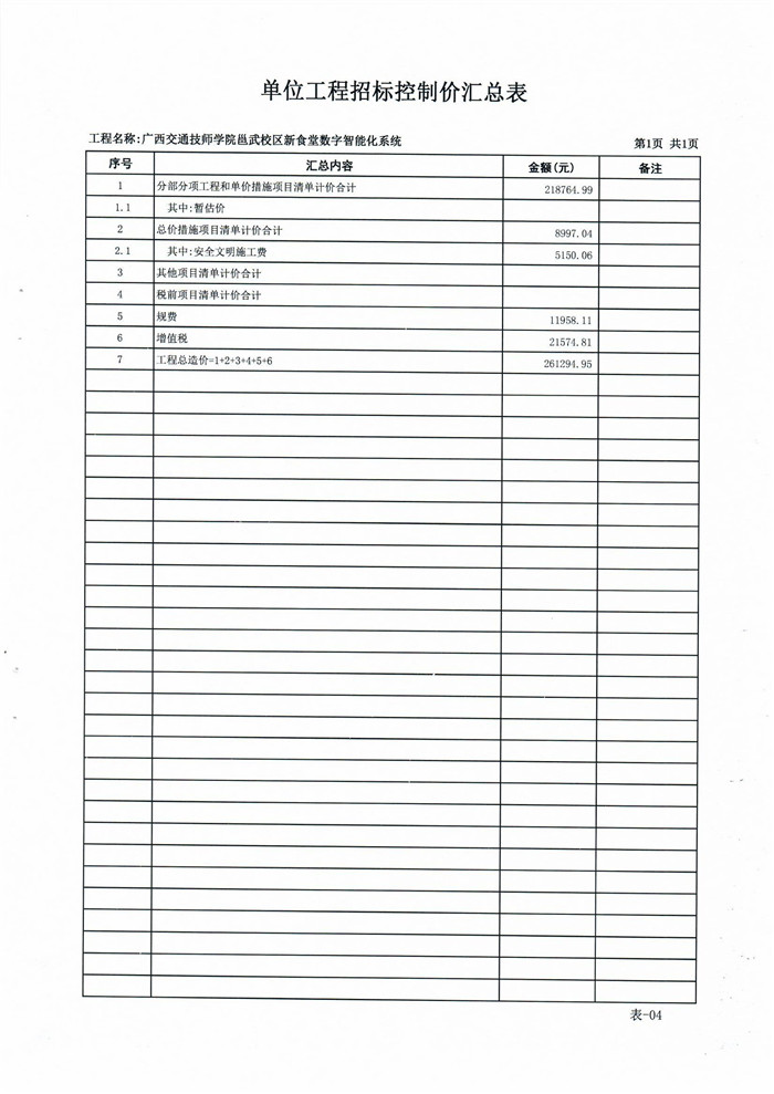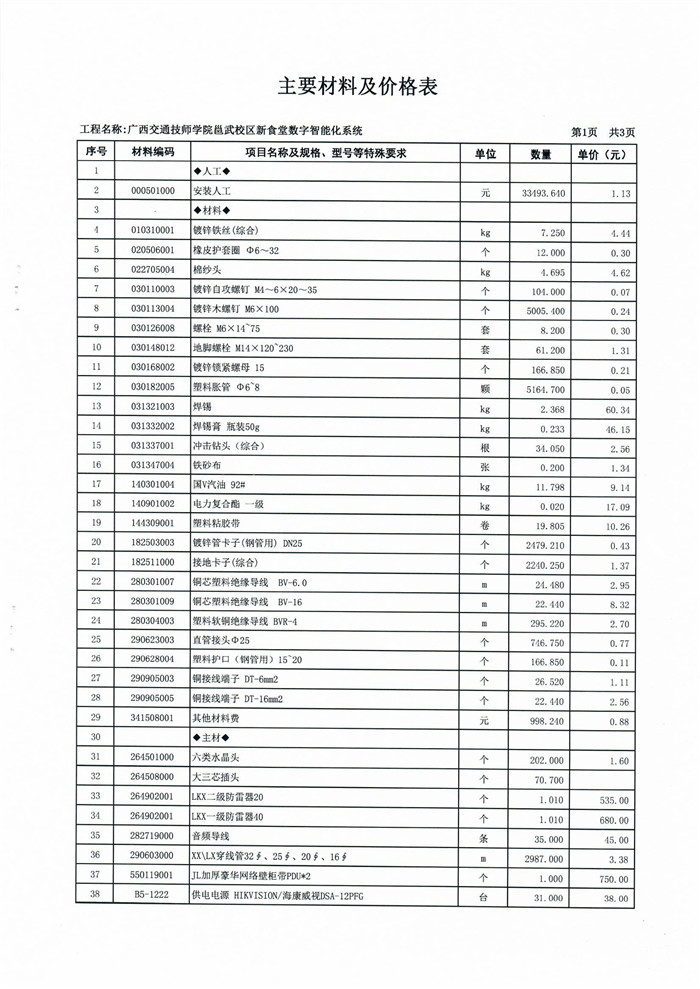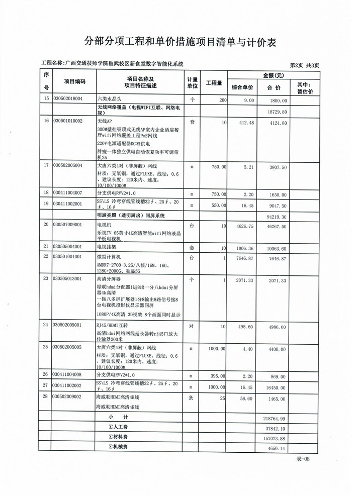 (四)采购需求:详见附件一《广西交通技师学院邕武校区新食堂数字智能化系统工程 招标控制价》相关内容。
