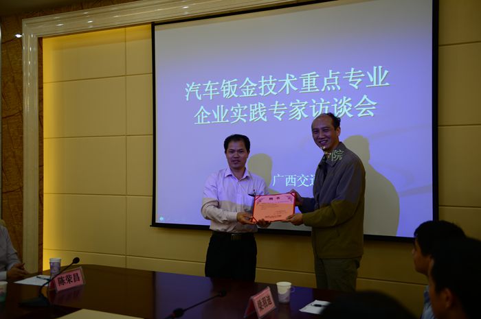 会议上,祝长其等10名企业实践专家和我院钣喷专业的教师们共同就“汽车维修与钣金课程体系建设”工作进行深入交流。企业实践专家们在会议中提出了许多宝贵的意见和建议,对我院的汽车维修与钣金专业课程体系建设及改革方案的进一步完善,起到非常重要的作用 。