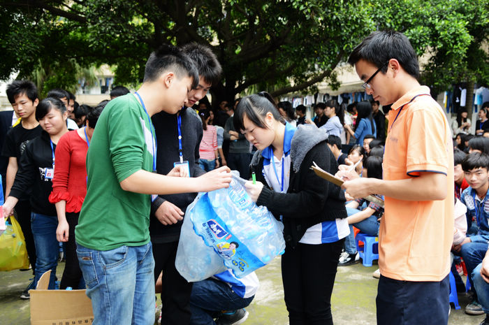 爱心社成员正在登记学生们捐献的物品