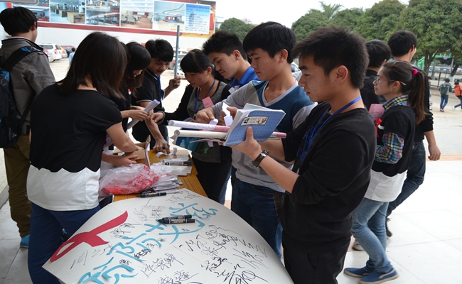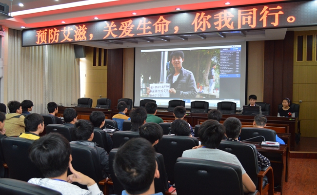 活动由广西医科大学公共卫生学院与我院心理协会共同承办,2013级团干及团员代表参加了此次活动。活动包括艾滋病知识同伴教育大课堂、知识展板宣传和知识有奖问答三个内容,分别在信息中心四楼会议室和学院活力广场进行。在大课堂上,医科大的同学们通过PPT演示和视频播放,让团员们了解了艾滋病及预防措施,并一一解答了团员们提出的疑问。在活力广场进行的展板宣传让我院更多的同学了解到了防艾知识,有趣的知识竞答更是吸引了同学们的积极参与。
