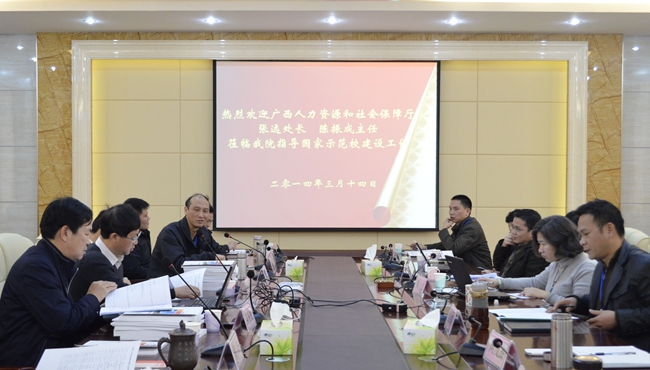 广西人力资源和社会保障厅张远处长、陈振成主任莅临我校指导国改示范校建设中期检查工作