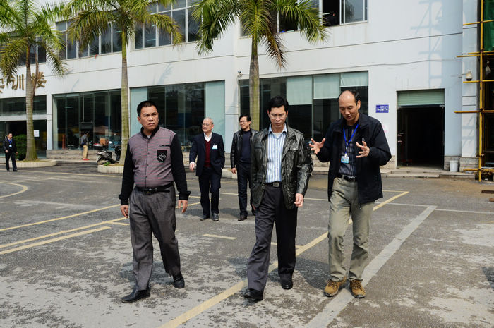 钦州市技工学校许家全副校长(右二)与我院关菲明副院长交流汽车相关专业办学经验