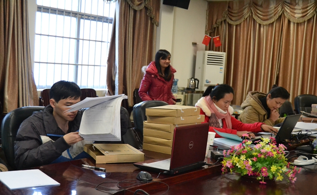 检查审计组工作人员在对我院劳动预备制原始材料现场检查