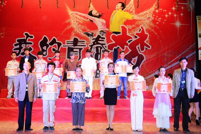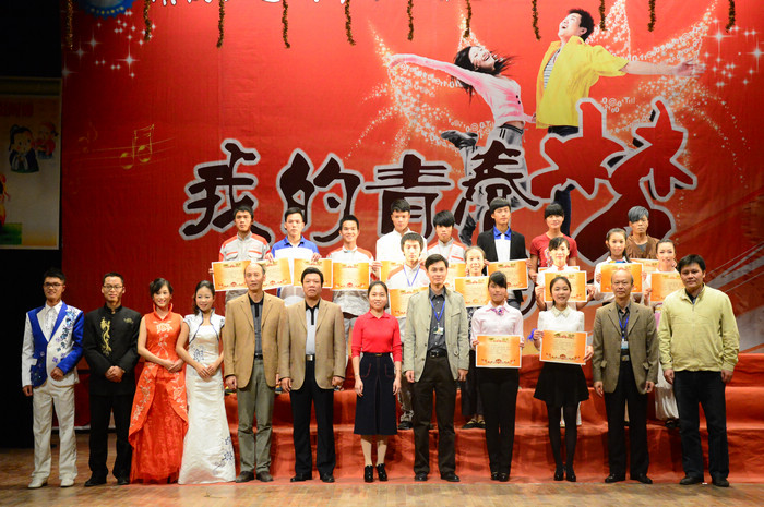 12月5日晚,我院第十届校园文化艺术节在学院大礼堂拉开帷幕。自治区人力资源和社会保障厅技工教育教研室副调研员曾文,学院韦红教院长、罗华书记、钟修仁副院长、关菲明副院长、谭劲涛院长助理出席开幕式,并为当晚《弟子规》朗诵竞赛获奖的班级颁奖。开幕式由钟修仁副院长主持。