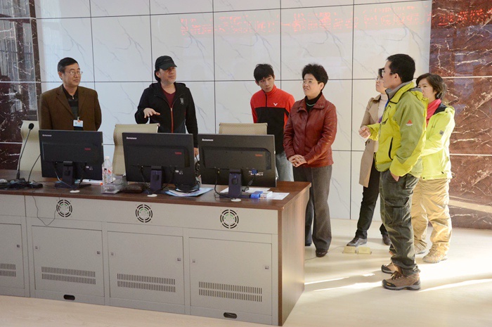 廖丽娟总编(左四)、叶瑞伟导演(左二)在我院信息与监控中心参观
