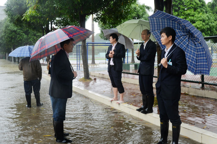 11日上午,持续不断的强降雨致使我院主干道受阻,部分宿舍一度进水。学院采取四项措施积极应对:一是及时启动应急预案,第一时间将内涝情况上报主管部门,请求南宁市政府支援,并启用学院提前准备好的两台大功率抽水机进行排涝,为抗灾赢得宝贵的时间。二是根据天气和受灾情况,及时停课和疏散学生,学院领导深入受灾第一线,组织学生安全撤离。三是学院领导亲自到学生宿舍安抚学生,并协调做好学生就餐保障工作,保障学生正常就餐,确保学生情绪稳定。四是加派人员值班巡逻,重点监控学生宿舍、教学实训基地等区域,不定时检查排涝相关设备,将灾害损失降低到最低限度。