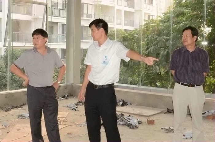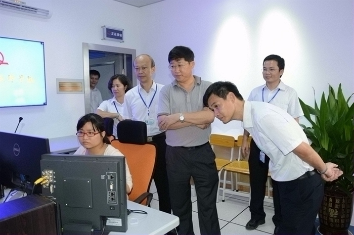张远处长一行先后视察了我院在建中的酒店管理实训基地、学前教育舞蹈练功房,信息监控中心和多功能演播中心等教学实训场地,在详细了解我院的相关项目建设、设施设备的投入后对我院在教学基础设施的投入以及校园数字化建设取得的成绩给予了称赞。