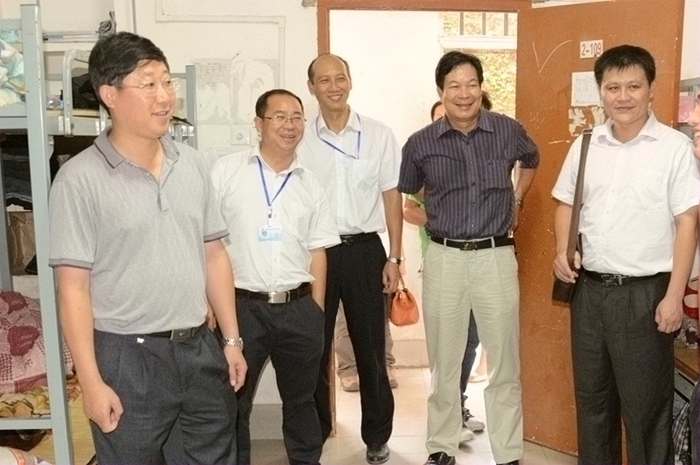 随后,张远处长一行在我院领导的陪同下来到高峰校区进行进一步的了解。高峰校区占地500多亩,配备有标准的田径场、篮球场和体育馆,教室、食堂、学生公寓等硬件设施一应俱全。学院在原有的设施基础上,新购置了一批汽车检测、汽车电气等实训设备以及计算机、投影仪等多媒体教学设备,配备了专门人员长期进驻进行管理,现有2012级汽车检测与维修专业的535名学生在高峰校区学习和生活。在高峰校区,张远处长走进校区饭堂、学生公寓以及教学区,对校区伙食情况、学生住宿情况和学习环境等进行了深入的了解。
