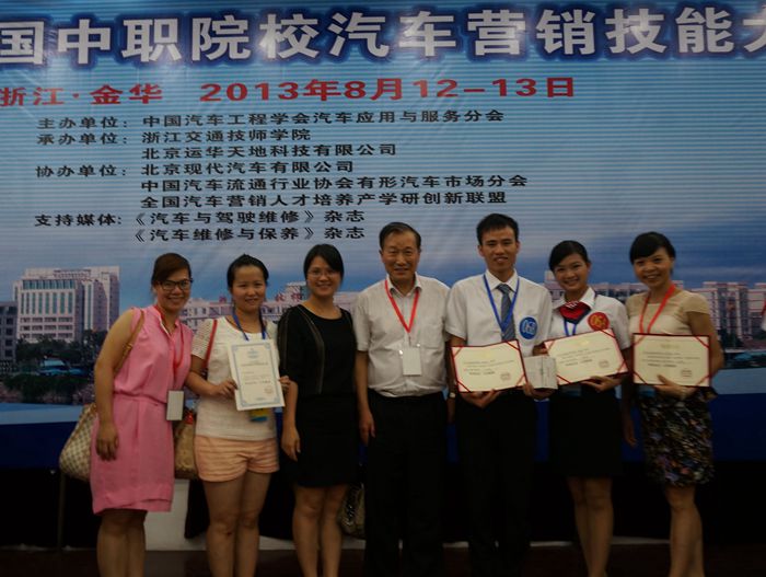 2013年8月,2013运华全国中职院校汽车营销技能大赛在浙江省金华市举行。我院选派的学生黄朗文、李晨参加了此次大赛,获得第六名(二等奖的第一名)。