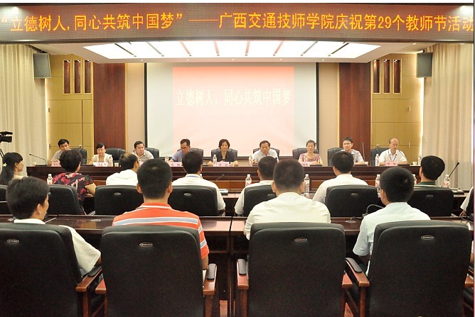 会上,处长岑春作重要讲话,她首先代表自治区交通运输厅向在教书育人战线上屡获佳绩的我院全体教职工致以节日的问候,对我院教职工为广西交通运输建设事业的大改革大发展所作出的积极贡献表示感谢。她向我院提出两点要求:一是在今后职业教育发展的大好形势下,学院领导班子要团结协作,科学规划,深入贯彻落实科学发展观,进一步调动广大教职工的积极性、主动性和创造性,把学院建设成为全区乃至全国品牌交通职业院校。二是广大教师和教育工作者在教书育人的第一线,以高度的政治责任感、强烈的历史使命感和无私奉献精神,默默耕耘,潜心教书,精心育人,在新学年的教育工作中开创新局面,为我区交通运输事业的大发展提供技能人才支持。