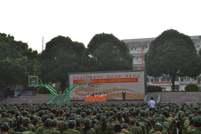 9月8日上午,我院2013级新生军训动员大会在灯光球场隆重举行,学院钟修仁副院长、广西武警一支队覃振周中队长及教官、各新生班级班主任和全体2013级新生参加了本次大会。
