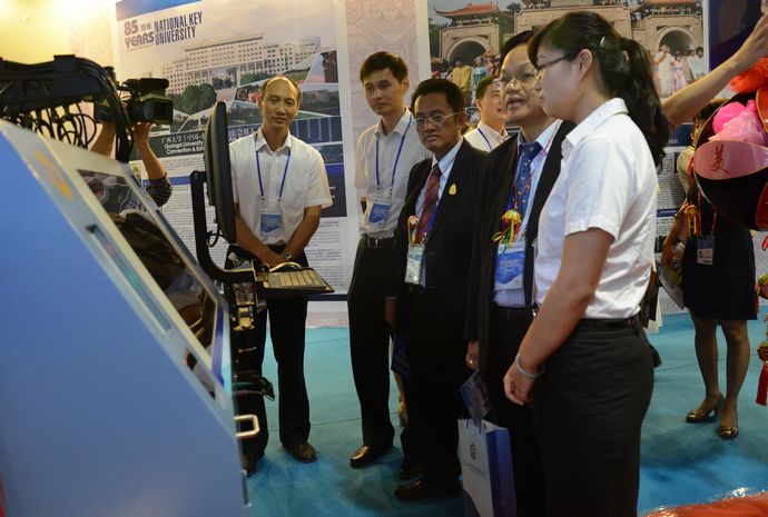 9月3日下午,以“发展现代职业教育,服务经济转型升级”为主题的2013中国-东盟职业教育联展暨论坛在广西科技馆开幕。中国教育部副部长鲁昕,东盟国家代表、柬埔寨(东盟轮值主席国)教育青年体育部副部长英·德和广西壮族自治区副主席李康等领导出席开幕式并致辞。我院作为参展单位参加了此次“中国—东盟职业教育联展”。 教育部副部长鲁昕、自治区副主席李康、教育厅厅长秦斌等领导莅临我院展台参观指导。