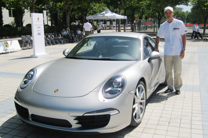 图二:学院关菲明副院长驾驶体验保时捷911车辆