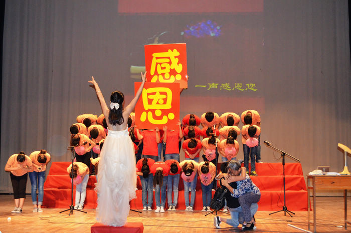 由2012级汽车装饰与维修中级工二班和2011级电子商务班组成的参赛队,男女声部配合默契,深情的合唱配以精彩情境表演流露出他们的感恩情怀,让现场观众掌声不断。