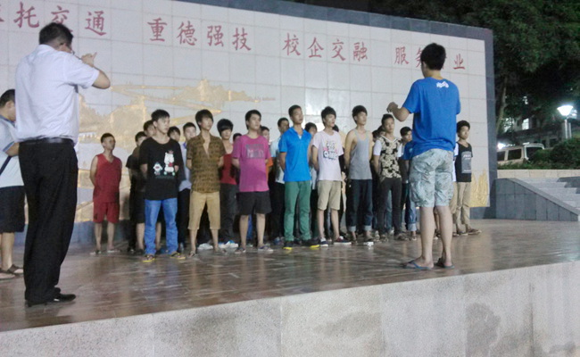 图二:同学们利用晚上的时间练习合唱