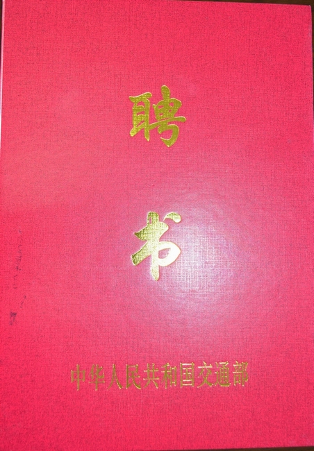 图一:中华人民共和国交通部颁发给我院关菲明副院长的聘书封面