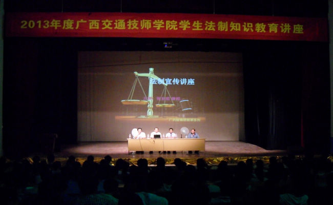 为了让我院即将顶岗实习的学生能够尽快融入社会生活,5月14日晚,我院在礼堂举办了2013年度广西交通技师学院学生法制安全知识教育讲座。钟修仁副院长出席了本次讲座,顶岗实习班级的学生和班主任参加了本次讲座。讲座开始前,钟副院长给同学们提出了要求,希望同学们能认真听讲座,通过讲座了解法律知识,并能够将法律知识运用于今后的工作和生活当中去,希望同学们时刻保持警惕,审思自身的同时要懂得利用法律武器保护好自己。