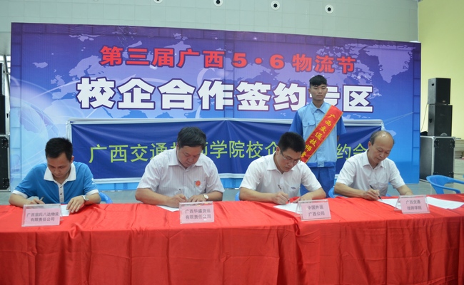 广西“5·6”物流节是为了进一步倡导物流行业文化,提升广西物流软实力,推进政府与企业之间、高校与企业之间、企业与企业之间以及物流行业与相关行业之间的交流和合作而举办的。我院在此次物流节上积极与企业进行沟通和交流,并取得丰硕的成果。成功与中国外运广西公司、广西中远物流公司、广西桂华物流有限公司、广西翁氏八达物流有限责任公司、广西东兴万通国际物流有限公司、南宁市华盛货运有限责任公司等六家广西知名物流企业签订校企合作协议书。