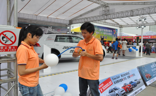 几天时间里天气变化无常,时晴时雨,这让我们的志愿者们吃尽了苦头。有的志愿者被炙热的太阳晒脱皮,汗水把衣服都湿透了,刚晾干,转眼却又淋了一身湿,但是他们的热情丝毫没有受到影响。朝气蓬勃,主动积极的热情感染着到场的人们。在展场内,他们接待顾客,为顾客指引,协助销售顾问销售汽车,用自己在学校学到的专业知识解答客户的疑问;在展场外,他们发放宣传单,为顾客指路,为车商做品牌宣传。志愿者们的专业精神和服务态度得到了主办方、汽车经销商和顾客的一致好评。