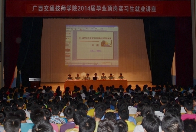 为了进一步加强我院2014届毕业生准确有效地确定就业方向,尽快让他们在思想、行动上早做准备,指导毕业生如何走好从学校走向社会, 2013年4月18日,由我院钟修仁副院长主讲的毕业生顶岗实习就业指导讲座在我院大礼堂成功举行。会议