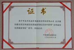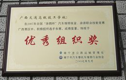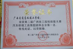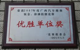 荣获2007年度广西汽车维修钣金、涂漆技能竞赛优胜单位奖