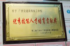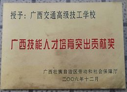 荣获自治区劳动和社会保障厅广西技能人才培育突出贡献奖