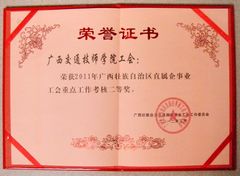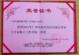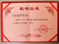 荣获2011年广西壮族自治区直属企事业工会财务工作竞赛一等奖