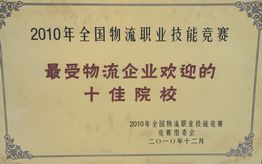 荣获2010年全国物流职业技能竞赛最受物流企业欢迎的十佳院校