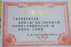 荣获2007年全国“奔腾杯”汽车维修钣金、涂漆职业技能竞赛广西赛区优秀组织奖